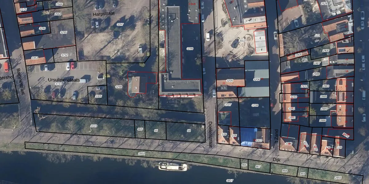 Het perceel waarop Doelenstraat 2-k-35 staat heeft een oppervlakte van 1559 m². Dit is een zeer groot perceel. De perceeloppervlakte wordt geregistreerd door het Kadaster. Gedetailleerde informatie over de maten van dit perceel kunt u vinden in het rapport Kadastrale kaart met maatvoering van Doelenstraat 2-k-35.