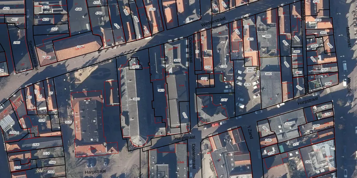 Het perceel waarop Doelenstraat 24 staat heeft een oppervlakte van 480 m². Dit is een groot perceel. De perceeloppervlakte wordt geregistreerd door het Kadaster. Gedetailleerde informatie over de maten van dit perceel kunt u vinden in het rapport Kadastrale kaart met maatvoering van Doelenstraat 24.