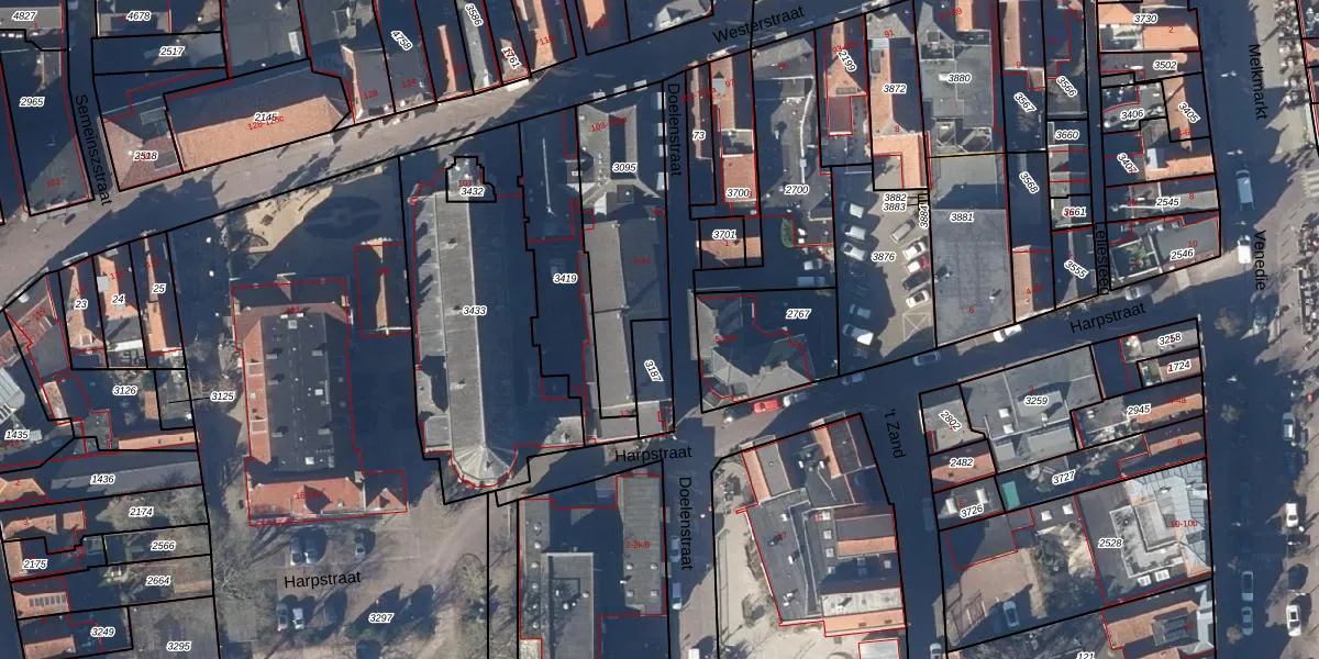 Het perceel waarop Doelenstraat 4-b staat heeft een oppervlakte van 103 m². Dit is een middelgroot perceel. De perceeloppervlakte wordt geregistreerd door het Kadaster. Gedetailleerde informatie over de maten van dit perceel kunt u vinden in het rapport Kadastrale kaart met maatvoering van Doelenstraat 4-b.