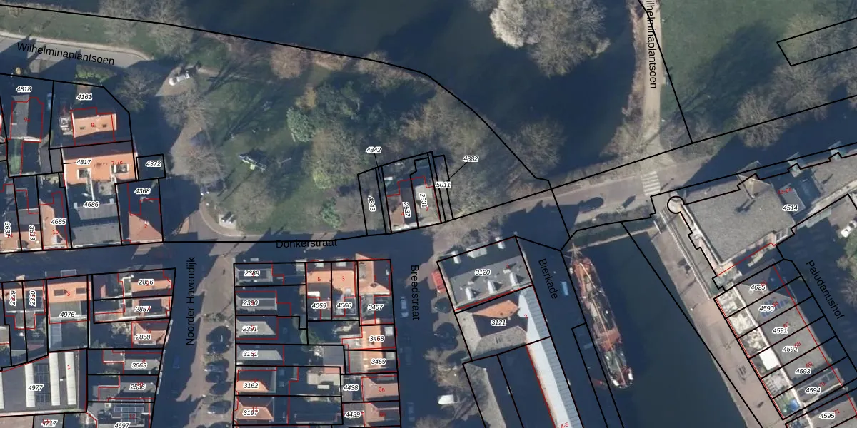 Gebruik de zoekbalk of klik op een perceel voor informatie over de adressen binnen dit perceel.