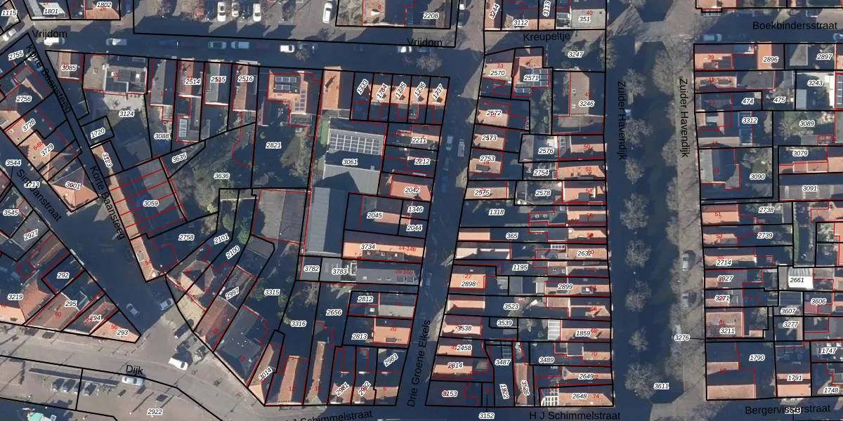 Gebruik de zoekbalk of klik op een perceel voor informatie over de adressen binnen dit perceel.