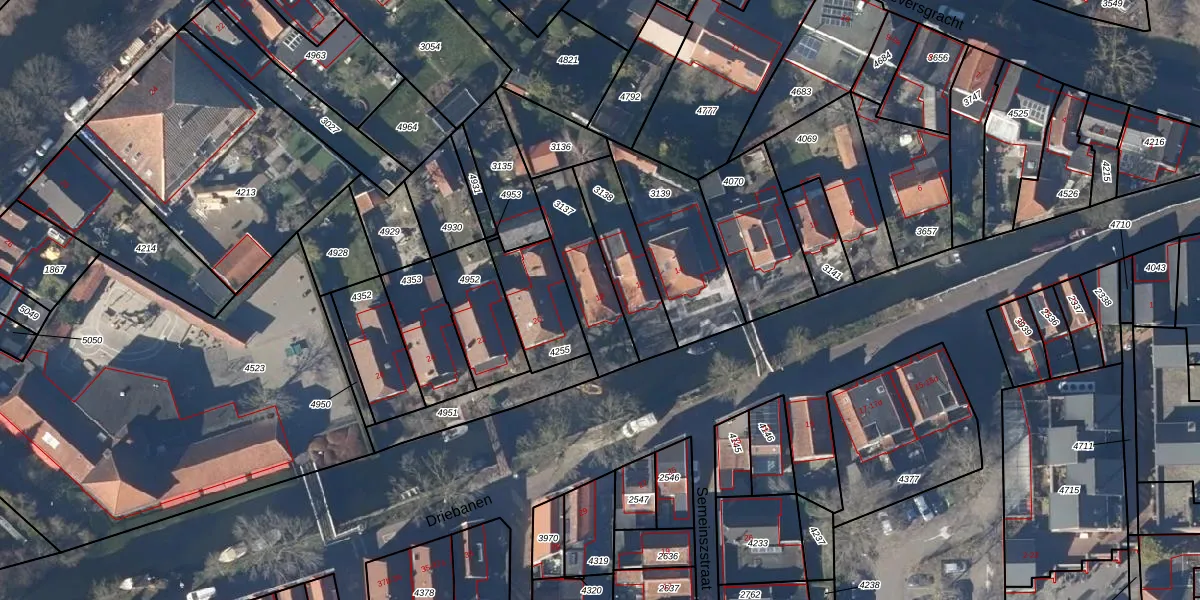 Het perceel waarop Driebanen 18 staat heeft een oppervlakte van 250 m². Dit is een middelgroot perceel. De perceeloppervlakte wordt geregistreerd door het Kadaster. Gedetailleerde informatie over de maten van dit perceel kunt u vinden in het rapport Kadastrale kaart met maatvoering van Driebanen 18.