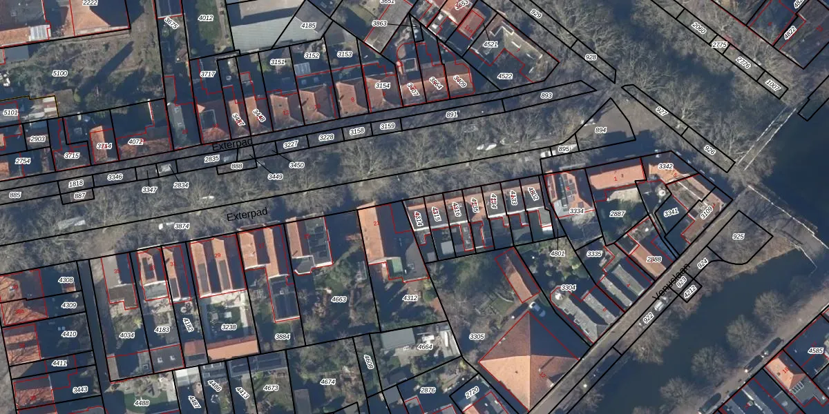 Het perceel waarop Exterpad 19 staat heeft een oppervlakte van 67 m². Dit is een klein perceel. De perceeloppervlakte wordt geregistreerd door het Kadaster. Gedetailleerde informatie over de maten van dit perceel kunt u vinden in het rapport Kadastrale kaart met maatvoering van Exterpad 19.