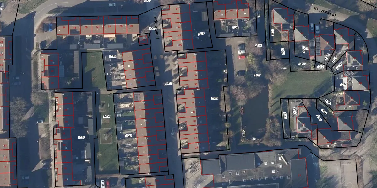 Het perceel waarop Frieseweid 36 staat heeft een oppervlakte van 1362 m². Dit is een zeer groot perceel. De perceeloppervlakte wordt geregistreerd door het Kadaster. Gedetailleerde informatie over de maten van dit perceel kunt u vinden in het rapport Kadastrale kaart met maatvoering van Frieseweid 36.