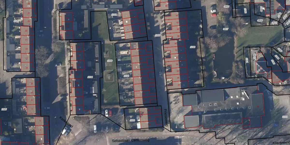Het perceel waarop Frieseweid 55 staat heeft een oppervlakte van 1113 m². Dit is een zeer groot perceel. De perceeloppervlakte wordt geregistreerd door het Kadaster. Gedetailleerde informatie over de maten van dit perceel kunt u vinden in het rapport Kadastrale kaart met maatvoering van Frieseweid 55.