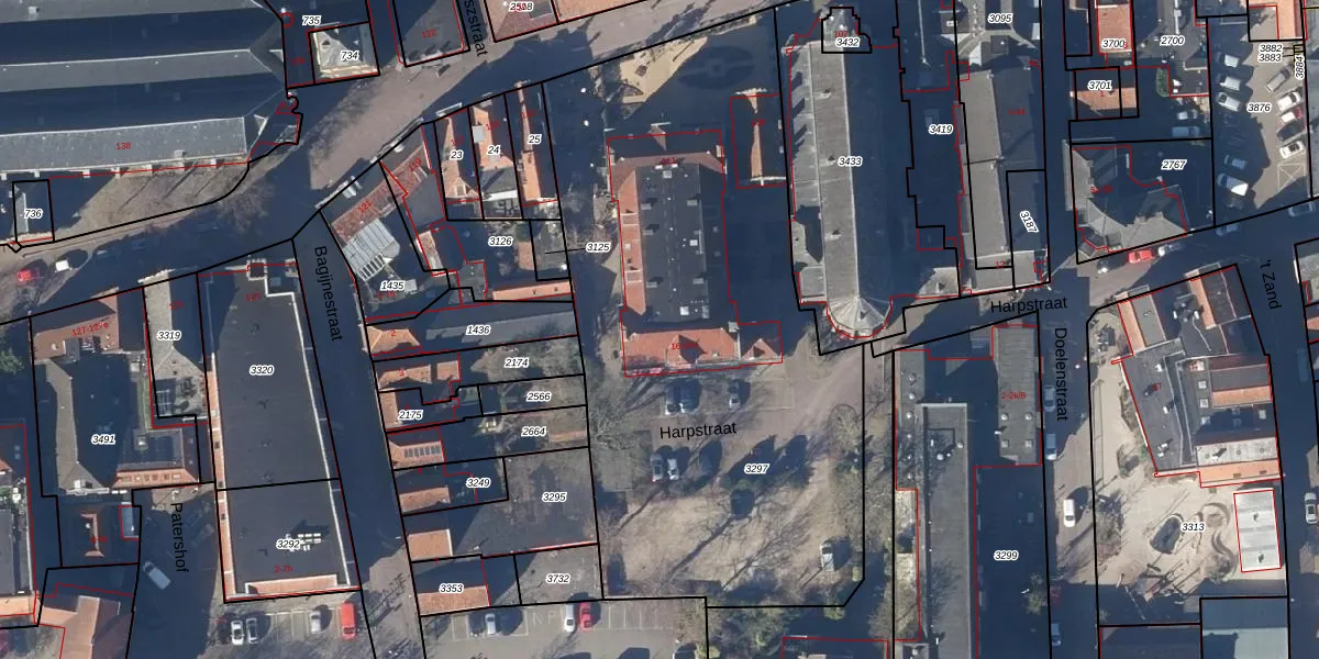 Het perceel waarop Harpstraat 24 staat heeft een oppervlakte van 3184 m². Dit is een zeer groot perceel. De perceeloppervlakte wordt geregistreerd door het Kadaster. Gedetailleerde informatie over de maten van dit perceel kunt u vinden in het rapport Kadastrale kaart met maatvoering van Harpstraat 24.
