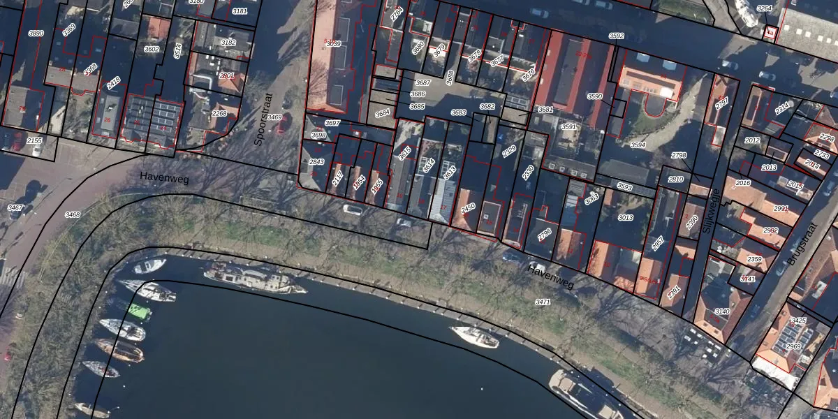 Gebruik de zoekbalk of klik op een perceel voor informatie over de adressen binnen dit perceel.