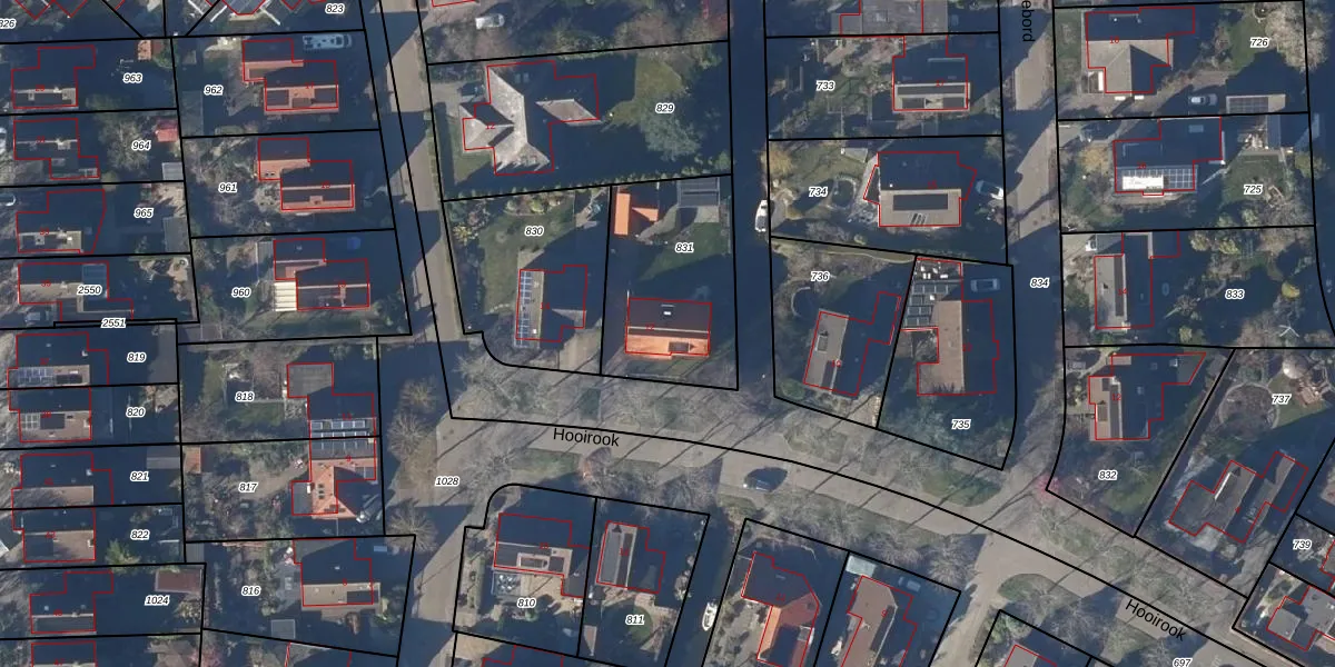 Het perceel waarop Hooirook 12 staat heeft een oppervlakte van 590 m². Dit is een groot perceel. De perceeloppervlakte wordt geregistreerd door het Kadaster. Gedetailleerde informatie over de maten van dit perceel kunt u vinden in het rapport Kadastrale kaart met maatvoering van Hooirook 12.