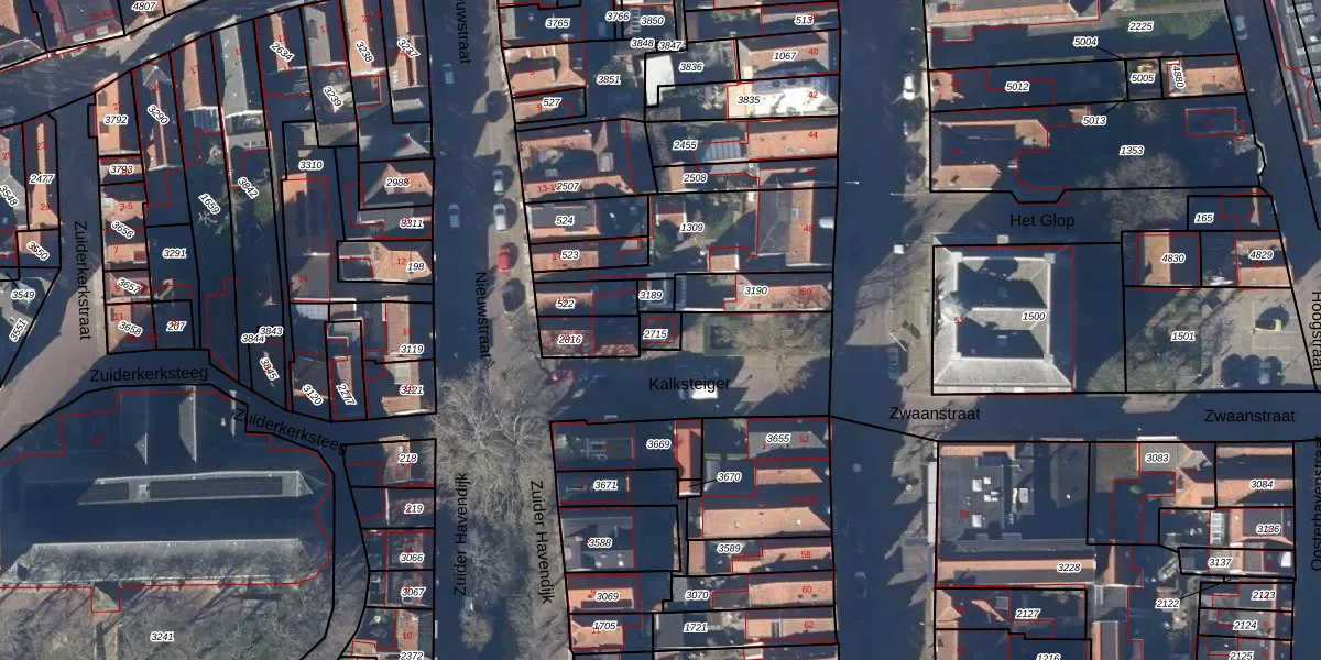 Gebruik de zoekbalk of klik op een perceel voor informatie over de adressen binnen dit perceel.
