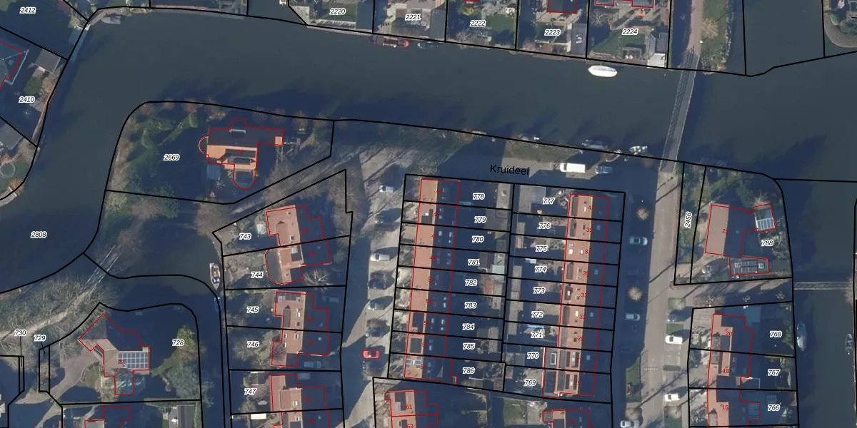 Kruideel 45 is gelegen op kadastraal perceel EHZ00H779. Deze kadastrale aanduiding is uniek en wordt gebruikt door het Kadaster om eigendomsrechten en andere zakelijke rechten vast te leggen. Het perceel maakt onderdeel uit van de kadastrale gemeente Enkhuizen.