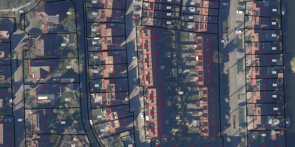 Kruideel 71 is gelegen op kadastraal perceel EHZ00H757. Deze kadastrale aanduiding is uniek en wordt gebruikt door het Kadaster om eigendomsrechten en andere zakelijke rechten vast te leggen. Het perceel maakt onderdeel uit van de kadastrale gemeente Enkhuizen.