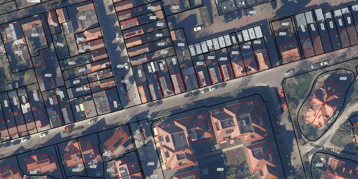 Gebruik de zoekbalk of klik op een perceel voor informatie over de adressen binnen dit perceel.