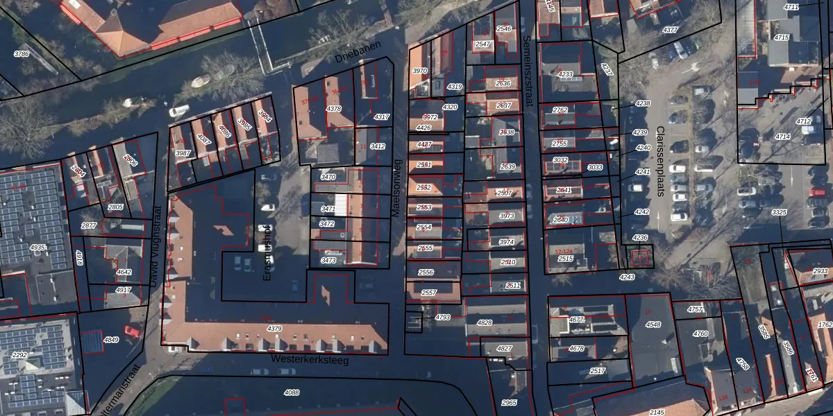Gebruik de zoekbalk of klik op een perceel voor informatie over de adressen binnen dit perceel.