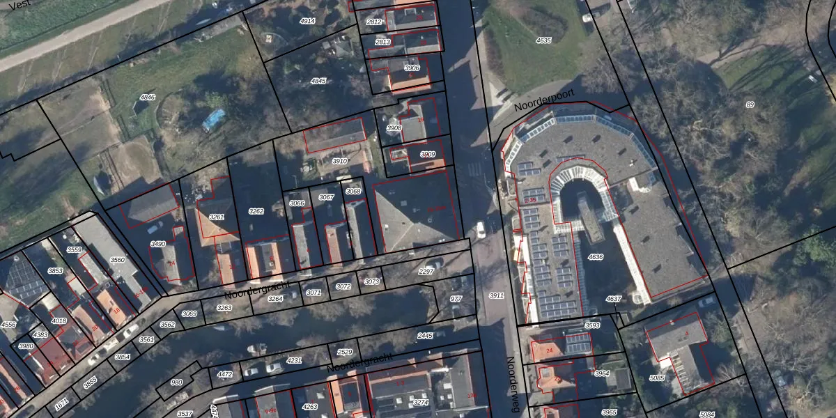 Het perceel waarop Noorderweg 15 staat heeft een oppervlakte van 755 m². Dit is een groot perceel. De perceeloppervlakte wordt geregistreerd door het Kadaster. Gedetailleerde informatie over de maten van dit perceel kunt u vinden in het rapport Kadastrale kaart met maatvoering van Noorderweg 15.