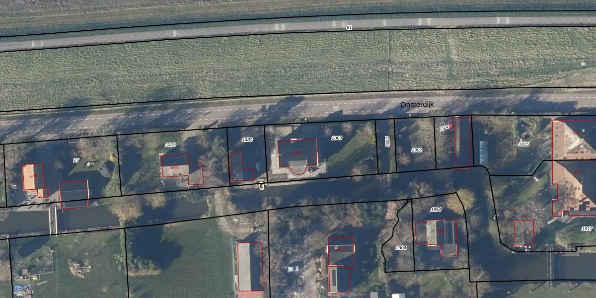 Het perceel waarop Oosterdijk 61-E staat heeft een oppervlakte van 705 m². Dit is een groot perceel. De perceeloppervlakte wordt geregistreerd door het Kadaster. Gedetailleerde informatie over de maten van dit perceel kunt u vinden in het rapport Kadastrale kaart met maatvoering van Oosterdijk 61-E.