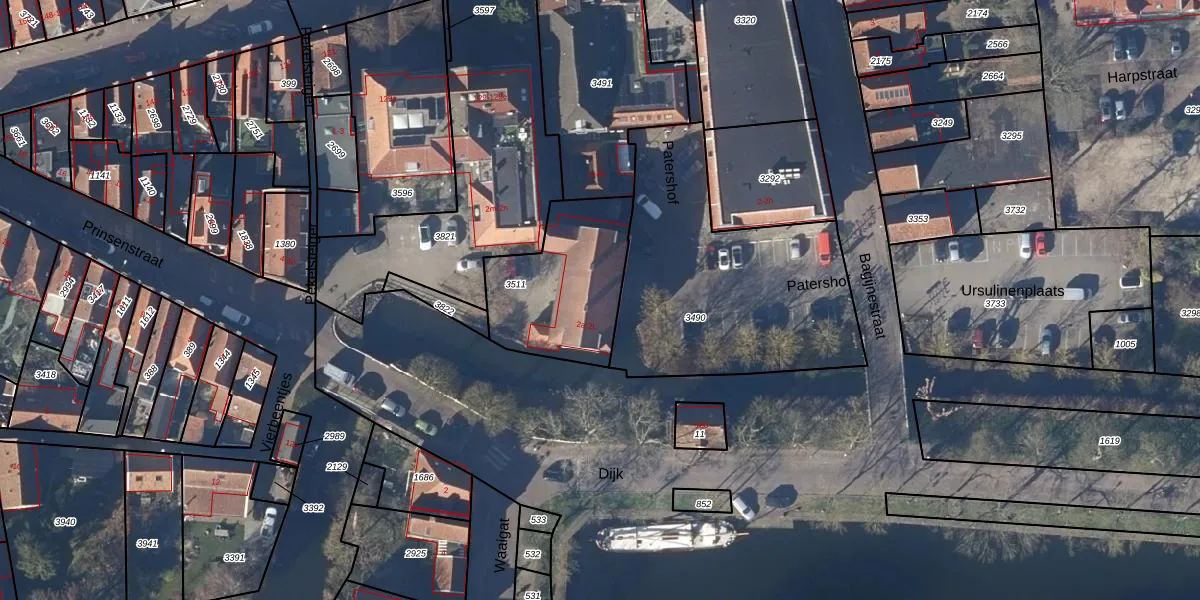 Het perceel waarop Prinsenstraat 2-k staat heeft een oppervlakte van 500 m². Dit is een groot perceel. De perceeloppervlakte wordt geregistreerd door het Kadaster. Gedetailleerde informatie over de maten van dit perceel kunt u vinden in het rapport Kadastrale kaart met maatvoering van Prinsenstraat 2-k.