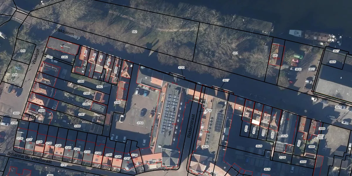 Het perceel waarop Ridderstraat 22 staat heeft een oppervlakte van 1927 m². Dit is een zeer groot perceel. De perceeloppervlakte wordt geregistreerd door het Kadaster. Gedetailleerde informatie over de maten van dit perceel kunt u vinden in het rapport Kadastrale kaart met maatvoering van Ridderstraat 22.