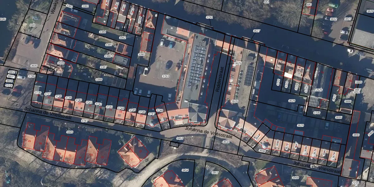 Het perceel waarop Ridderstraat 72 staat heeft een oppervlakte van 1927 m². Dit is een zeer groot perceel. De perceeloppervlakte wordt geregistreerd door het Kadaster. Gedetailleerde informatie over de maten van dit perceel kunt u vinden in het rapport Kadastrale kaart met maatvoering van Ridderstraat 72.