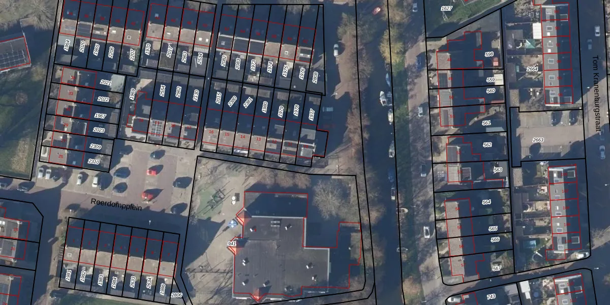 Gebruik de zoekbalk of klik op een perceel voor informatie over de adressen binnen dit perceel.