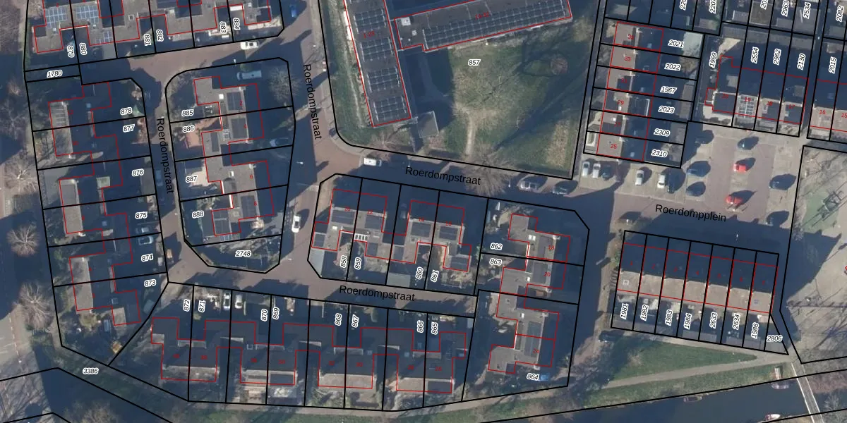 Gebruik de zoekbalk of klik op een perceel voor informatie over de adressen binnen dit perceel.