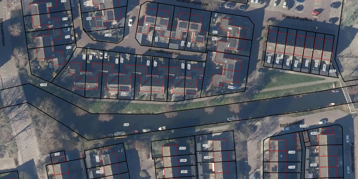 Gebruik de zoekbalk of klik op een perceel voor informatie over de adressen binnen dit perceel.