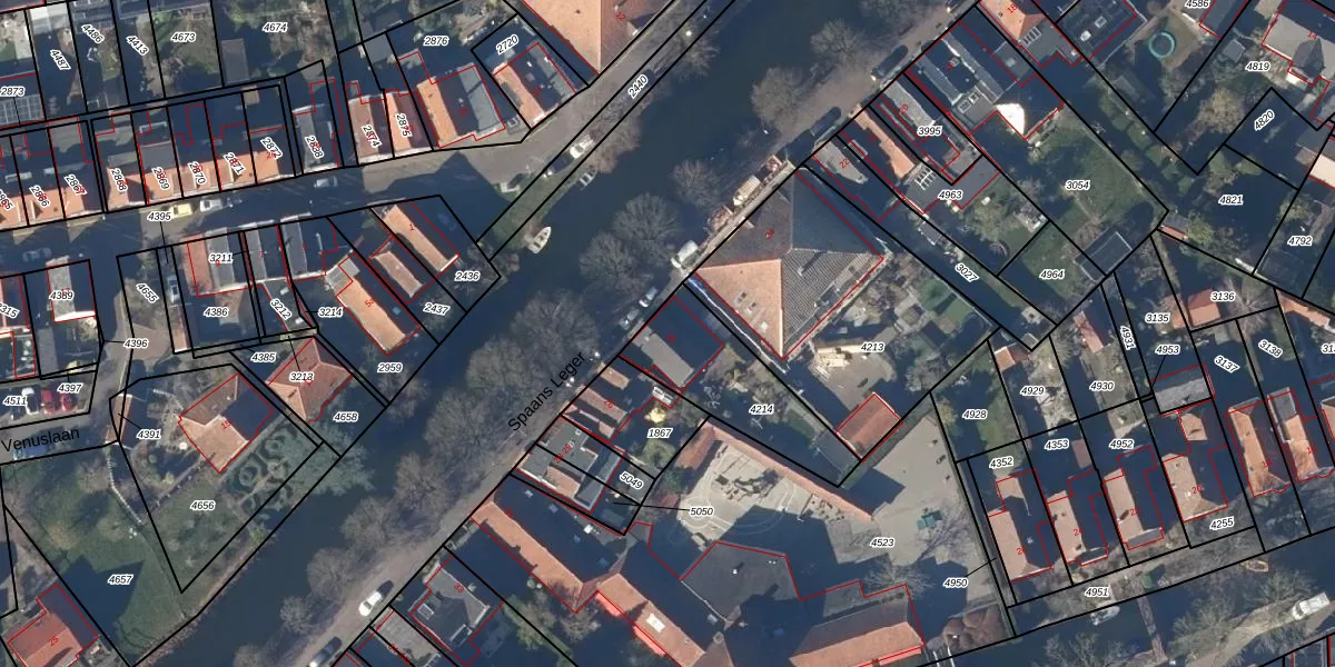 Het perceel waarop Spaans Leger 25 staat heeft een oppervlakte van 377 m². Dit is een groot perceel. De perceeloppervlakte wordt geregistreerd door het Kadaster. Gedetailleerde informatie over de maten van dit perceel kunt u vinden in het rapport Kadastrale kaart met maatvoering van Spaans Leger 25.