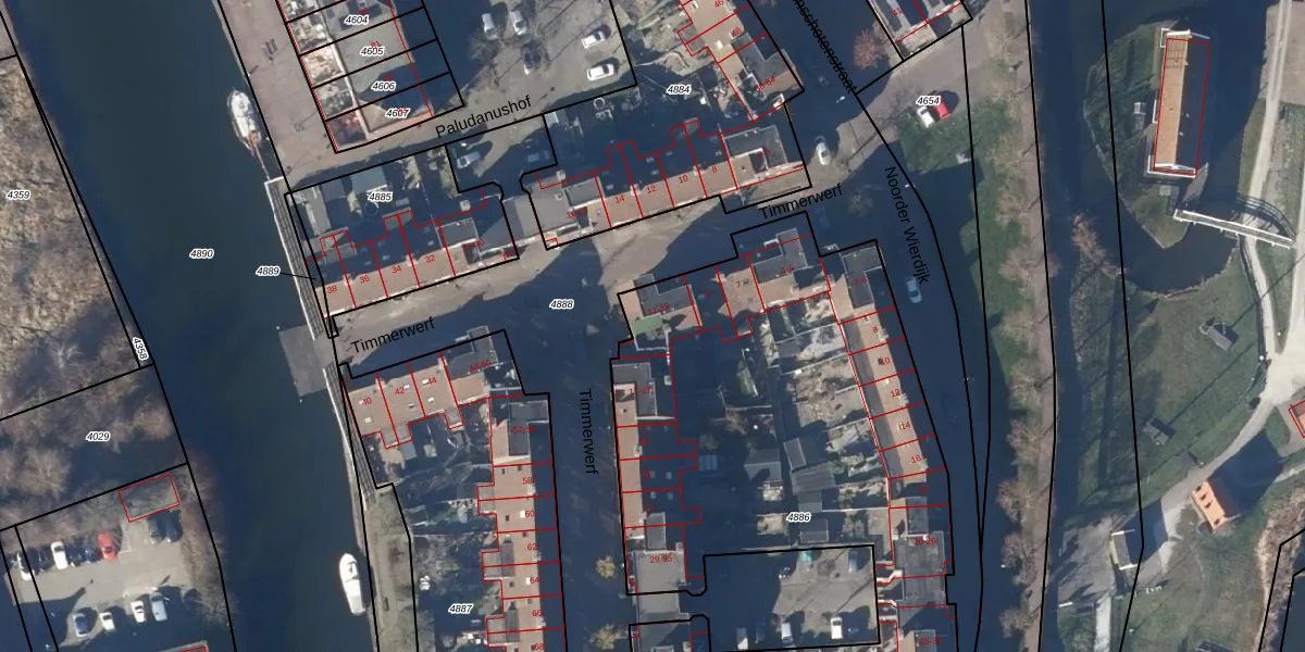 Het perceel waarop Timmerwerf 13 staat heeft een oppervlakte van 4060 m². Dit is een zeer groot perceel. De perceeloppervlakte wordt geregistreerd door het Kadaster. Gedetailleerde informatie over de maten van dit perceel kunt u vinden in het rapport Kadastrale kaart met maatvoering van Timmerwerf 13.