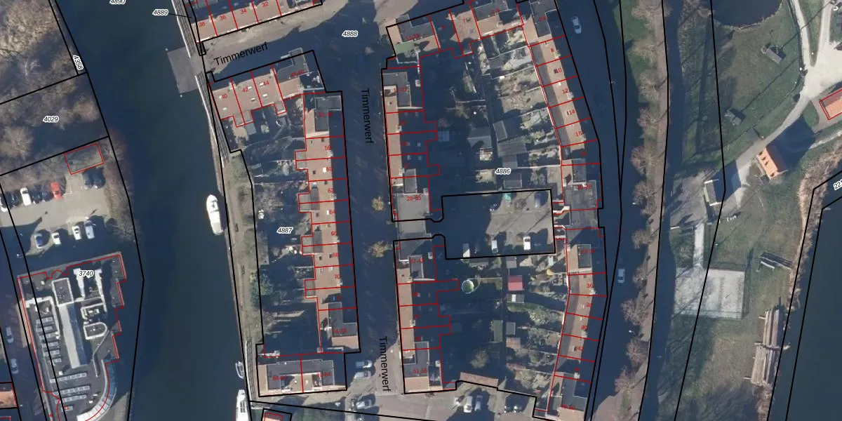 Timmerwerf 33 is gelegen op kadastraal perceel EHZ00E4886. Deze kadastrale aanduiding is uniek en wordt gebruikt door het Kadaster om eigendomsrechten en andere zakelijke rechten vast te leggen. Het perceel maakt onderdeel uit van de kadastrale gemeente Enkhuizen.