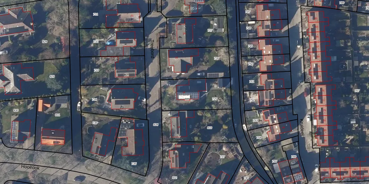 Gebruik de zoekbalk of klik op een perceel voor informatie over de adressen binnen dit perceel.