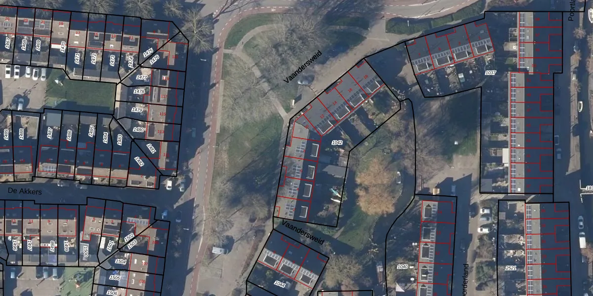 Het perceel waarop Vaandersweid 8 staat heeft een oppervlakte van 1253 m². Dit is een zeer groot perceel. De perceeloppervlakte wordt geregistreerd door het Kadaster. Gedetailleerde informatie over de maten van dit perceel kunt u vinden in het rapport Kadastrale kaart met maatvoering van Vaandersweid 8.