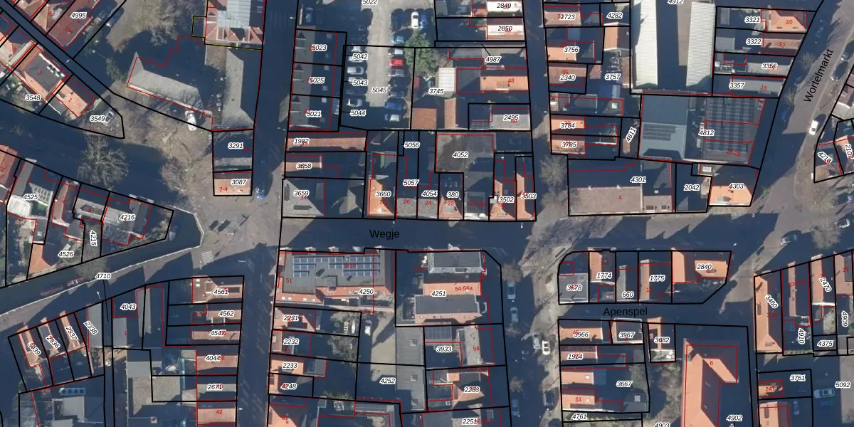 Het perceel waarop Wegje 24 staat heeft een oppervlakte van 96 m². Dit is een klein perceel. De perceeloppervlakte wordt geregistreerd door het Kadaster. Gedetailleerde informatie over de maten van dit perceel kunt u vinden in het rapport Kadastrale kaart met maatvoering van Wegje 24.
