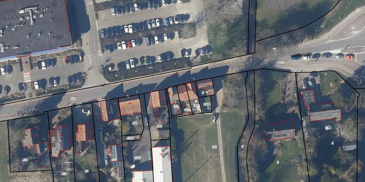 Gebruik de zoekbalk of klik op een perceel voor informatie over de adressen binnen dit perceel.