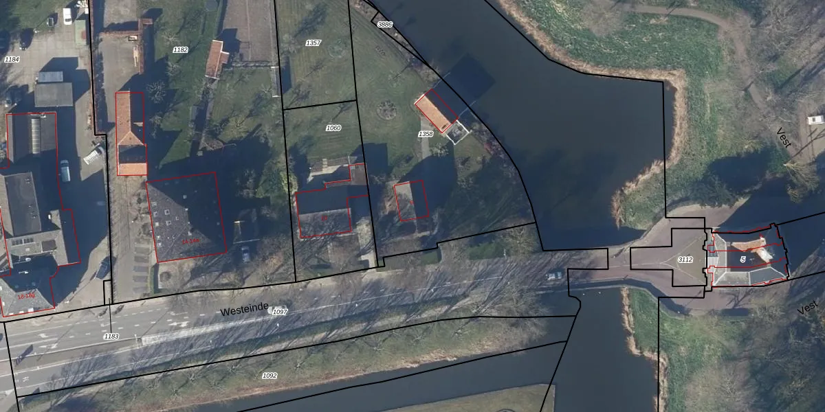 Het perceel waarop Westeinde 6 staat heeft een oppervlakte van 1530 m². Dit is een zeer groot perceel. De perceeloppervlakte wordt geregistreerd door het Kadaster. Gedetailleerde informatie over de maten van dit perceel kunt u vinden in het rapport Kadastrale kaart met maatvoering van Westeinde 6.
