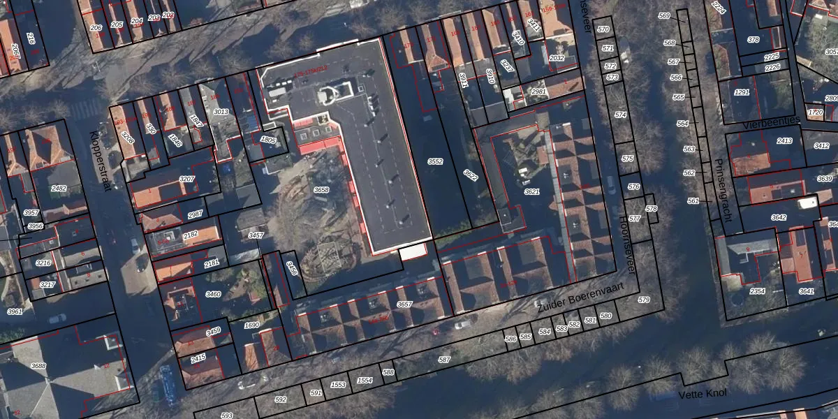 Het adres is gelegen op perceel 3658 in de sectie D en de kadastrale gemeente Enkhuizen. De kadastrale aanduiding is aldus EHZ00-D-3658. Het perceel is kleiner dan gemiddeld in Enkhuizen. Het perceel is 1983 m² groot, terwijl het gemiddelde ligt op 1,2 ha. De grootste perceeloppervlakte in de kadastrale gemeente is 51,18 km². De kleinste oppervlakte bedraagt 0 m². Op het perceel liggen in totaal 38 adressen. In de Basisregistratie Kadaster (BRK) werden de grenzen van het perceel geregistreerd op 28-07-2010.