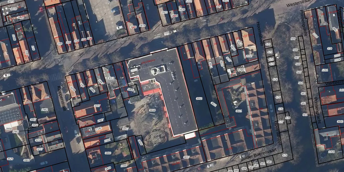 Het perceel waarop Westerstraat 175-k-204 staat heeft een oppervlakte van 1983 m². Dit is een zeer groot perceel. De perceeloppervlakte wordt geregistreerd door het Kadaster. Gedetailleerde informatie over de maten van dit perceel kunt u vinden in het rapport Kadastrale kaart met maatvoering van Westerstraat 175-k-204.