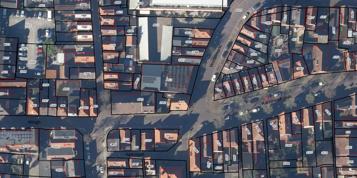 Het perceel waarop Wortelmarkt 26 staat heeft een oppervlakte van 475 m². Dit is een groot perceel. De perceeloppervlakte wordt geregistreerd door het Kadaster. Gedetailleerde informatie over de maten van dit perceel kunt u vinden in het rapport Kadastrale kaart met maatvoering van Wortelmarkt 26.