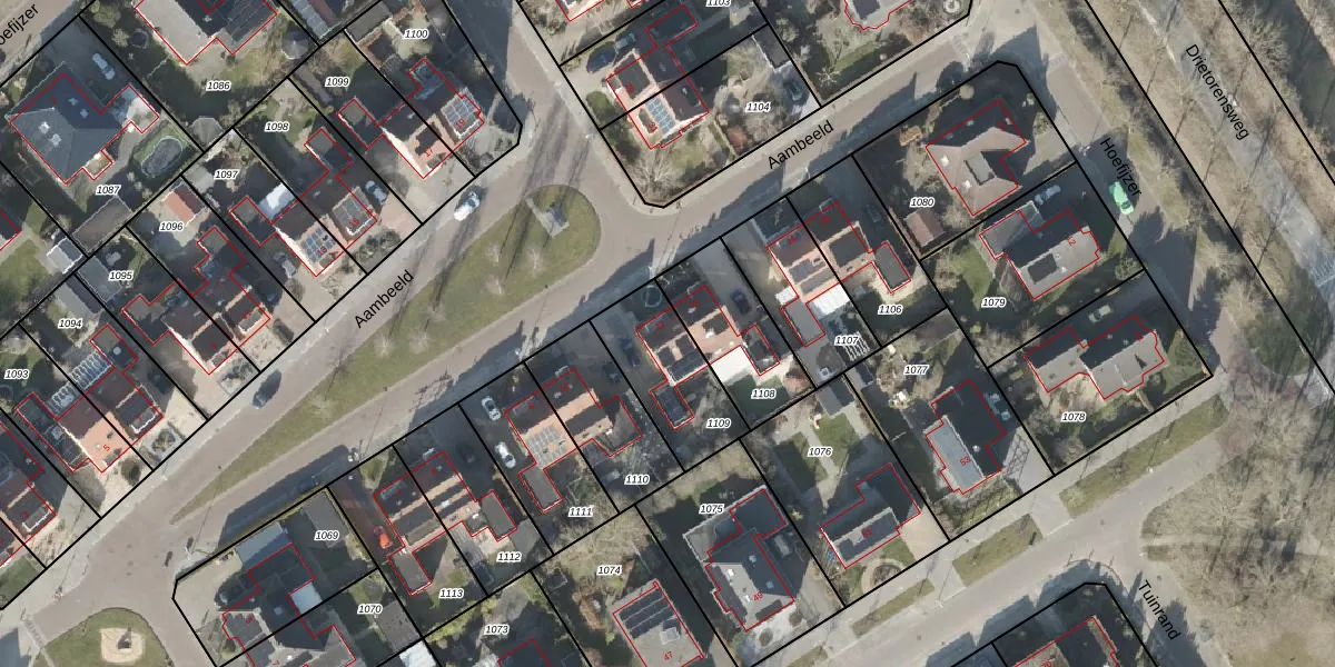 Het perceel waarop Aambeeld 12 staat heeft een oppervlakte van 314 m². Dit is een groot perceel. De perceeloppervlakte wordt geregistreerd door het Kadaster. Gedetailleerde informatie over de maten van dit perceel kunt u vinden in het rapport Kadastrale kaart met maatvoering van Aambeeld 12.