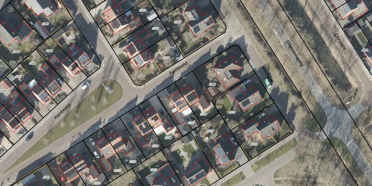 Het perceel waarop Aambeeld 18 staat heeft een oppervlakte van 314 m². Dit is een groot perceel. De perceeloppervlakte wordt geregistreerd door het Kadaster. Gedetailleerde informatie over de maten van dit perceel kunt u vinden in het rapport Kadastrale kaart met maatvoering van Aambeeld 18.