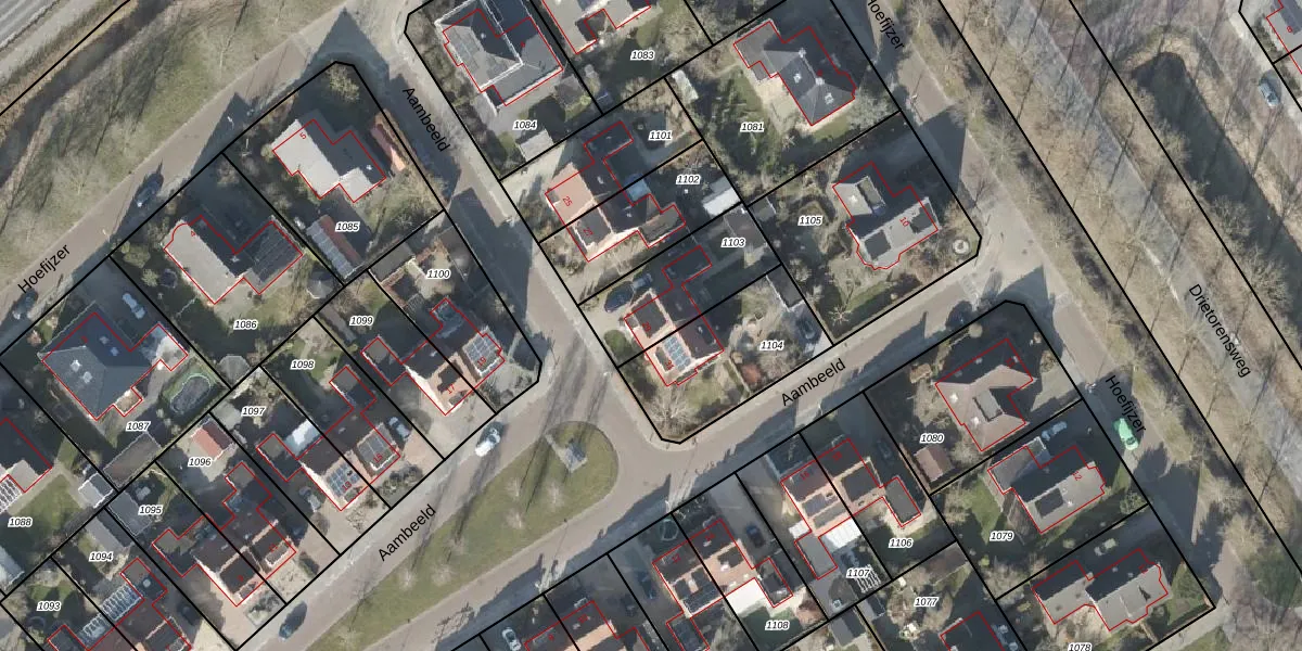 Het perceel waarop Aambeeld 29 staat heeft een oppervlakte van 340 m². Dit is een groot perceel. De perceeloppervlakte wordt geregistreerd door het Kadaster. Gedetailleerde informatie over de maten van dit perceel kunt u vinden in het rapport Kadastrale kaart met maatvoering van Aambeeld 29.
