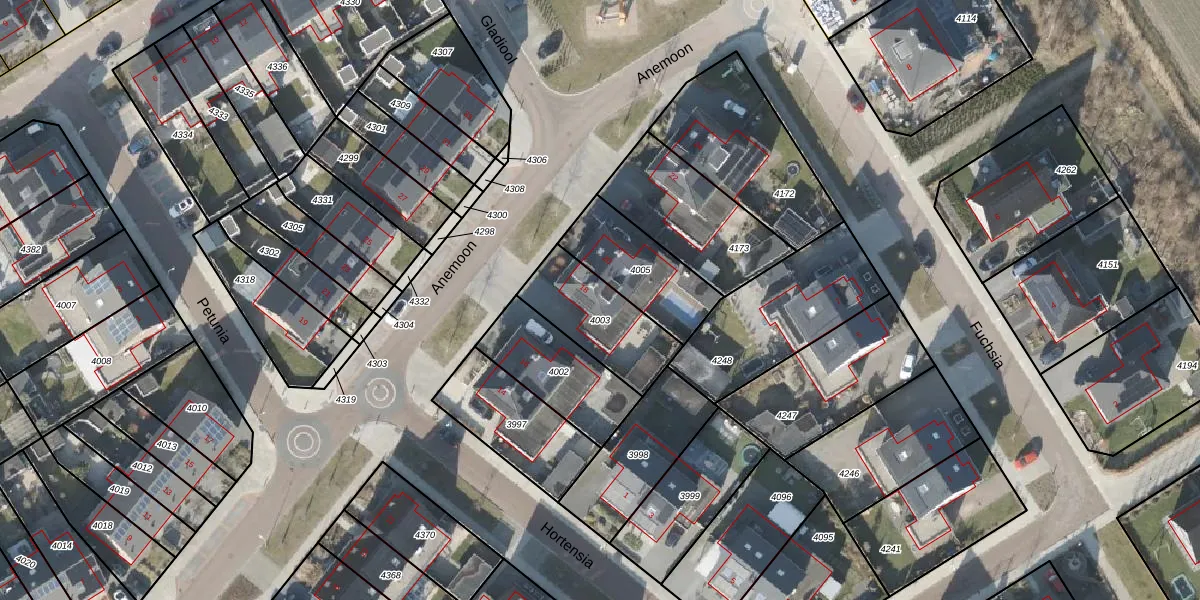Het perceel waarop Anemoon 18 staat heeft een oppervlakte van 297 m². Dit is een middelgroot perceel. De perceeloppervlakte wordt geregistreerd door het Kadaster. Gedetailleerde informatie over de maten van dit perceel kunt u vinden in het rapport Kadastrale kaart met maatvoering van Anemoon 18.