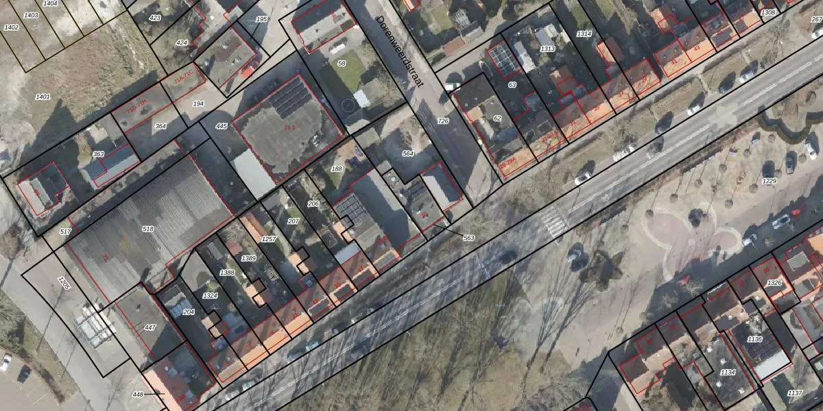 Gebruik de zoekbalk of klik op een perceel voor informatie over de adressen binnen dit perceel.