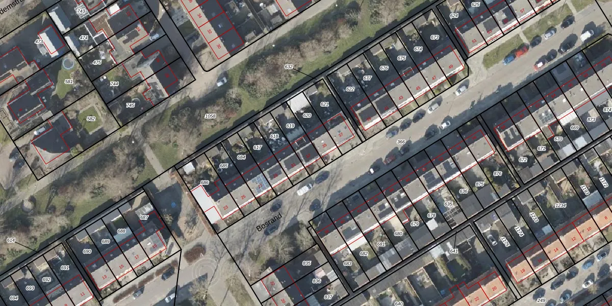 Gebruik de zoekbalk of klik op een perceel voor informatie over de adressen binnen dit perceel.