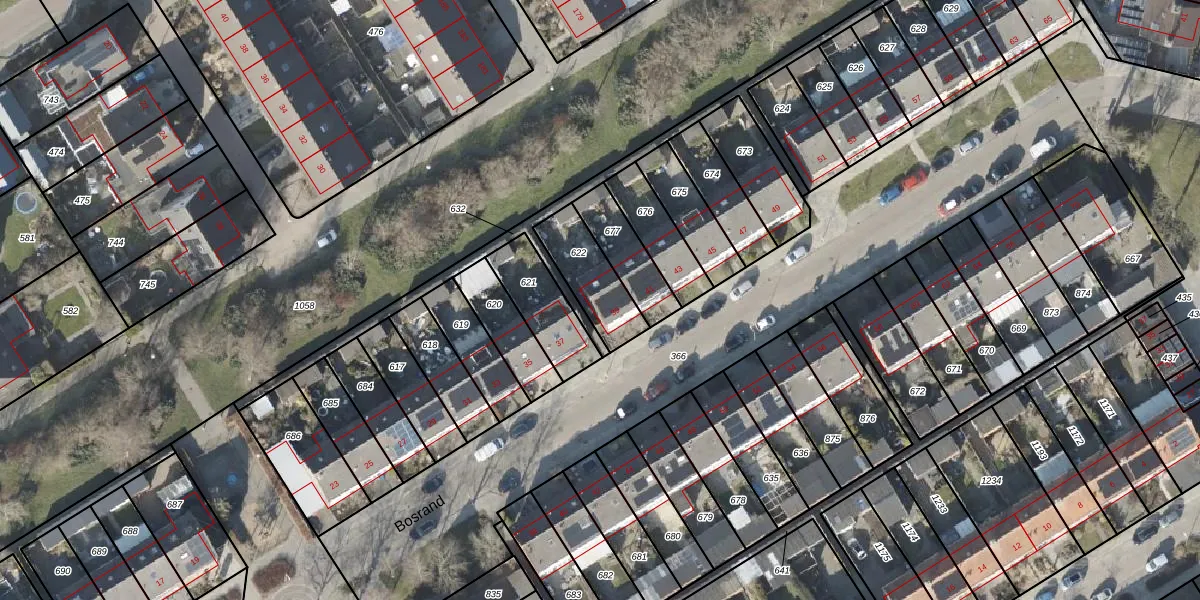 Het perceel waarop Bosrand 39 staat heeft een oppervlakte van 192 m². Dit is een middelgroot perceel. De perceeloppervlakte wordt geregistreerd door het Kadaster. Gedetailleerde informatie over de maten van dit perceel kunt u vinden in het rapport Kadastrale kaart met maatvoering van Bosrand 39.