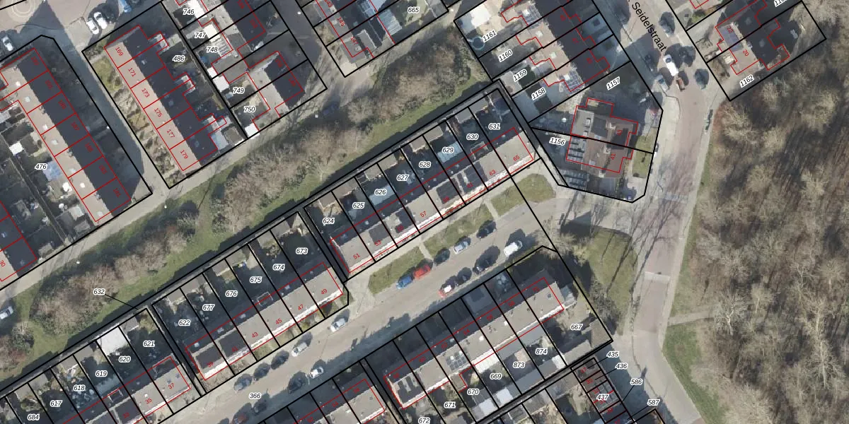Gebruik de zoekbalk of klik op een perceel voor informatie over de adressen binnen dit perceel.