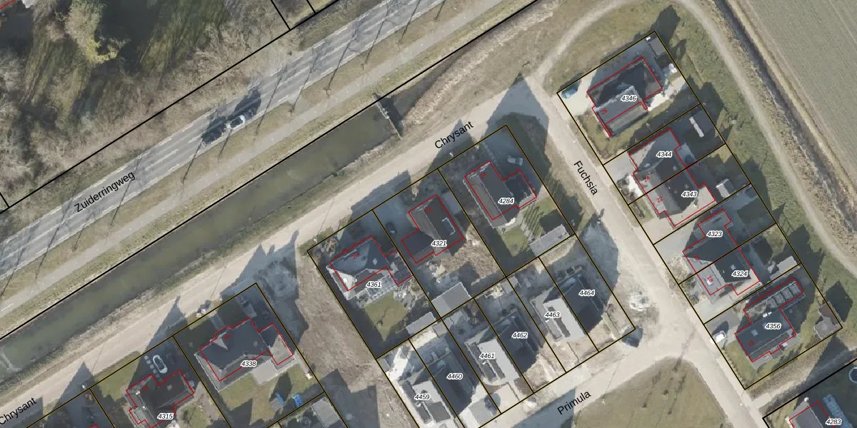Het perceel waarop Chrysant 22 staat heeft een oppervlakte van 541 m². Dit is een groot perceel. De perceeloppervlakte wordt geregistreerd door het Kadaster. Gedetailleerde informatie over de maten van dit perceel kunt u vinden in het rapport Kadastrale kaart met maatvoering van Chrysant 22.