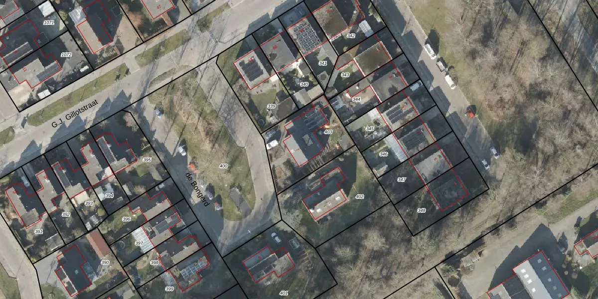 Gebruik de zoekbalk of klik op een perceel voor informatie over de adressen binnen dit perceel.
