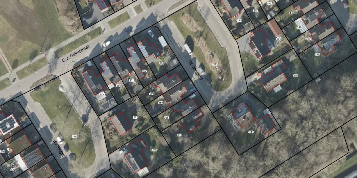 Gebruik de zoekbalk of klik op een perceel voor informatie over de adressen binnen dit perceel.