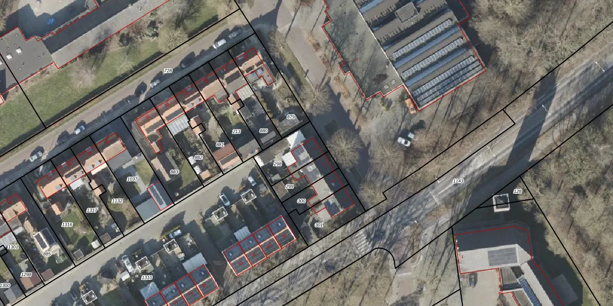 Gebruik de zoekbalk of klik op een perceel voor informatie over de adressen binnen dit perceel.