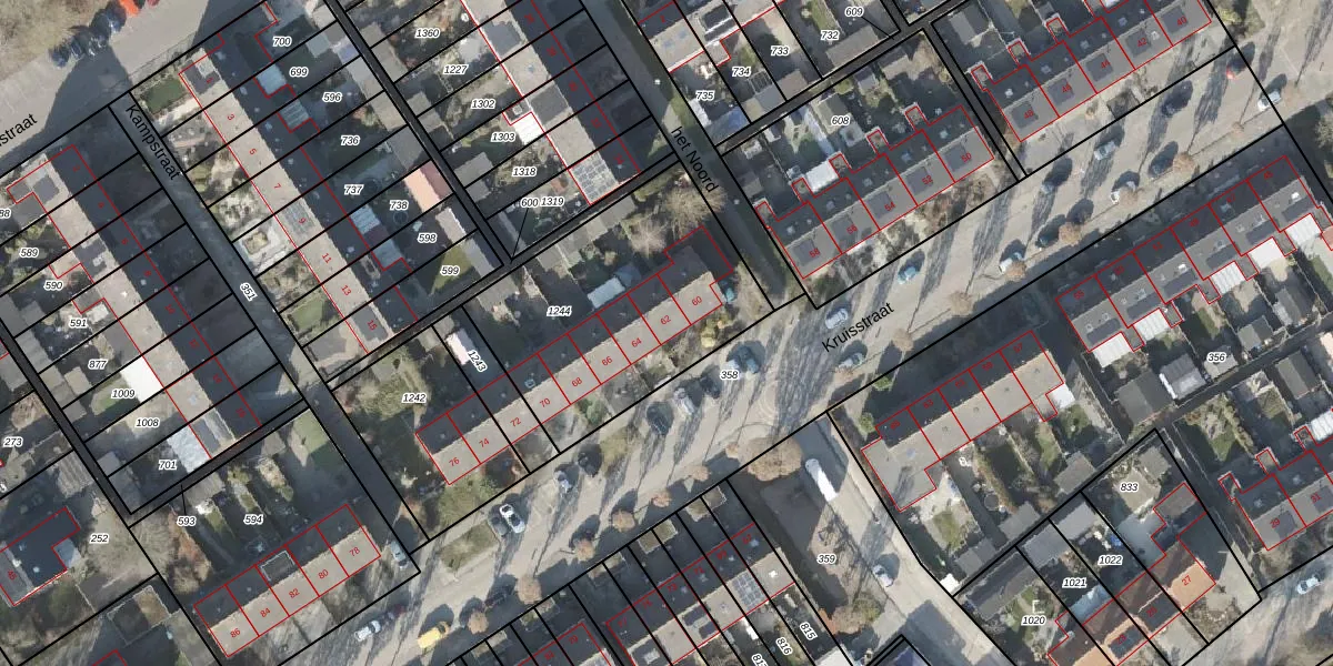 Het perceel waarop Kruisstraat 62 staat heeft een oppervlakte van 1044 m². Dit is een zeer groot perceel. De perceeloppervlakte wordt geregistreerd door het Kadaster. Gedetailleerde informatie over de maten van dit perceel kunt u vinden in het rapport Kadastrale kaart met maatvoering van Kruisstraat 62.