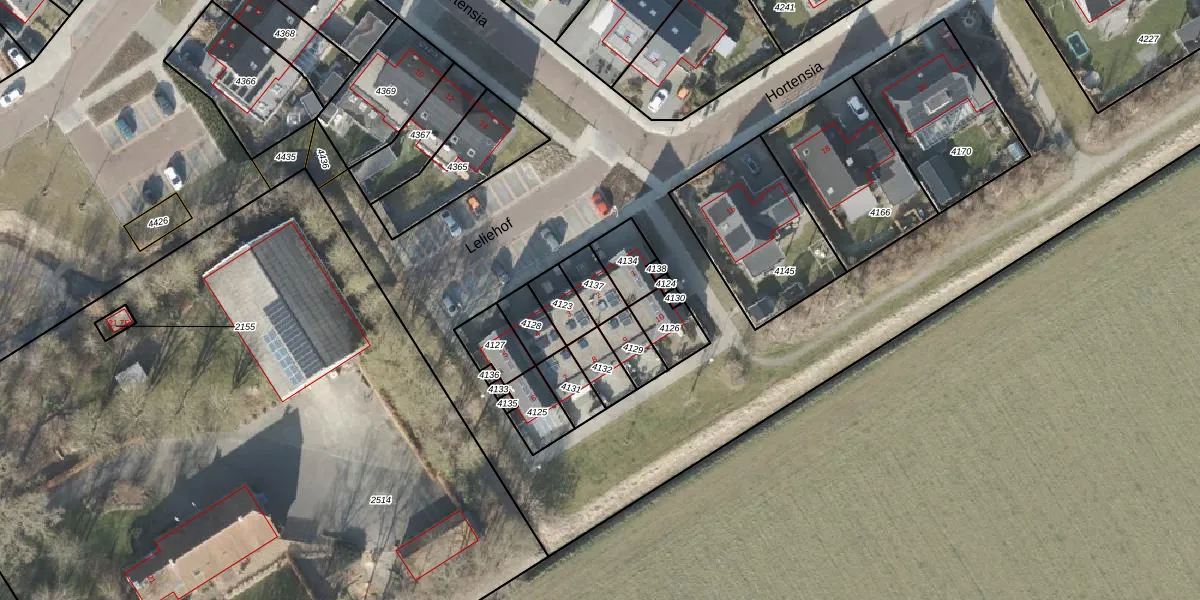 Het perceel waarop Leliehof 2 staat heeft een oppervlakte van 75 m². Dit is een klein perceel. De perceeloppervlakte wordt geregistreerd door het Kadaster. Gedetailleerde informatie over de maten van dit perceel kunt u vinden in het rapport Kadastrale kaart met maatvoering van Leliehof 2.